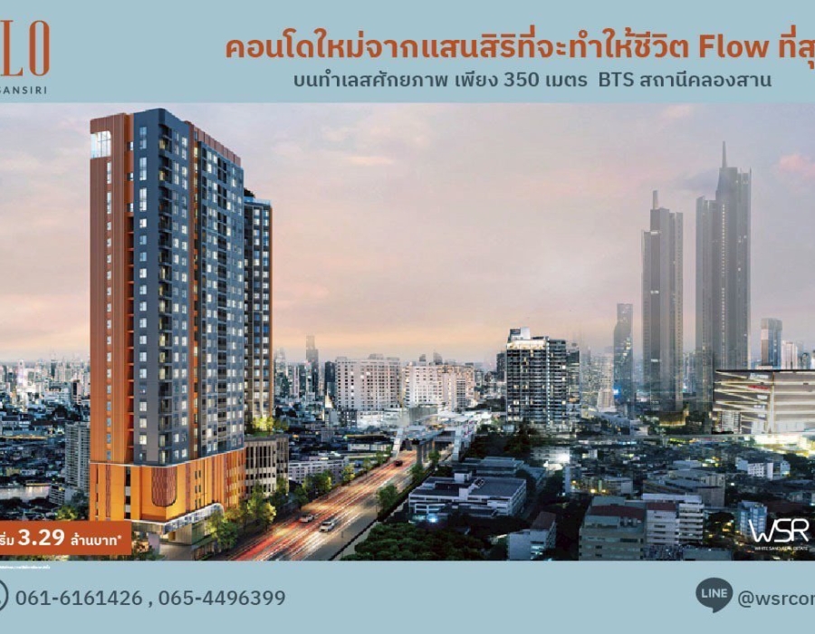 ขายคอนโด FLO by Sansiri ราคาเริ่มต้นเพียง 3.09 ลบ. ทำเลคลองสาน