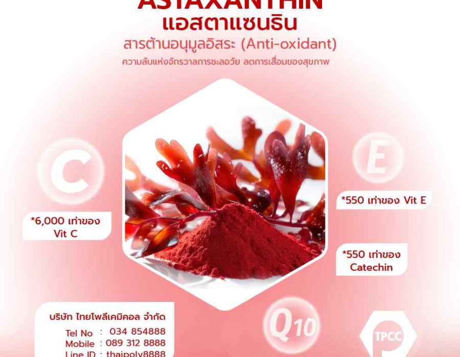 สามารถสอบถามข้อมูลสินค้าได้ที่ บริษัท ไทยโพลีเคมิคอล จำกัด (แอสตาแซนธิน) ประเทศไทย